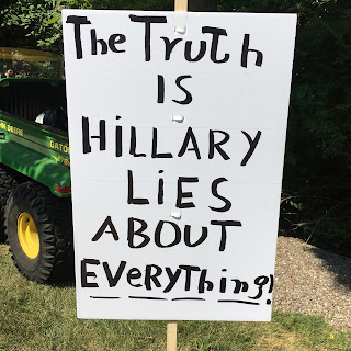 There is hope! In the past my signs might last a day or two. Now, they last ten days or more. People honk, stop to take pictures and leave them alone. Could it be that they are starting to understand how bad Hillary is?